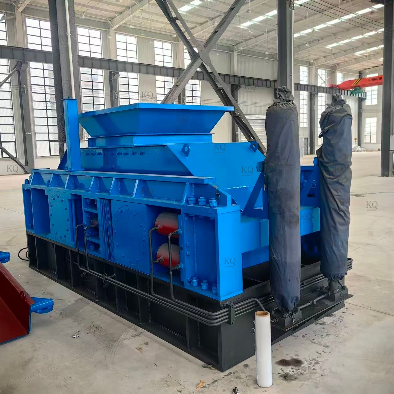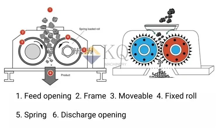 Hydraulic roller crusher adopts two horizontally arranged rollers rotating in opposite directions, dynamically adjusting the pressure and gap between rollers (usually 1-20mm) through hydraulic system, utilizing high-pressure extrusion and shear force to crush the materials, and the finished products are in the form of cubic shape with even particle size (low over-crushing rate), suitable for medium and fine crushing of medium and low hardness materials, such as coal, limestone, iron ore, etc. The advantages of this roller crusher include high precision of full hydraulic control, automatic protection, convenient adjustment of discharge, and support for wet material processing, which is widely used in the fields of mineral processing, building materials, refractory materials and so on. Its advantages include high precision of full hydraulic control, automatic protection, convenient adjustment of discharged material, and support for wet material processing, which is widely used in the fields of mineral processing, building materials, refractory materials and other fields of the demand for precise regulation of particle size.