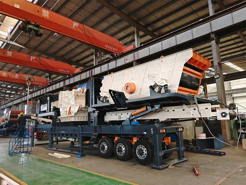 The tire mobile impact crushing plant is designed for efficient crushing and fast transfer, equipped with full hydraulic tire chassis, four-wheel independent steering + hydraulic outrigger stabilization system, self-propelled movement without trailer (speed 1.8km/h), 15 minutes to complete the parking - crushing mode switching, suitable for construction sites, quarries, and other flat sites. The core impact crusher adopts heavy-duty double rotor design (speed 450-750rpm), equipped with high chromium composite plate hammer (life expectancy ≥ 6,000 hours), with a maximum feed size of 600mm, capacity of 200-650t/h, finished product size of 10-50mm infinitely adjustable, and a cubic rate of ≥ 92%. Intelligent control system monitors the rotor balance, bearing temperature and motor load in real time, automatically matches the gap of impact plate and feeding frequency, and triggers the shutdown protection within 5 seconds under abnormal working conditions, reducing the failure rate by 45%. The modular quick-disassembly structure supports 15-minute replacement of the plate hammer, the integrated reclaim circulation system improves the crushing efficiency by 20%, and the -25℃ low-temperature preheating and 50℃ forced air-cooling ensure all-weather stable operation. It is suitable for granite, concrete recycled aggregate and other high hardness materials, and the power consumption of single machine is as low as 1.4kW-h/ton. It can be equipped with electromagnetic iron remover or three-stage screening module to realize the integrated operation of “crushing-screening-removing impurities”, which can increase the integrated production capacity by 35%, and shorten the return on investment cycle to 12 months.