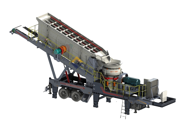 The tire-type mobile cone crushing plant adopts fully hydraulic drive chassis, equipped with four-wheel independent steering system and hydraulic outrigger stabilizer, which can realize 10-minute switching between parking and crushing modes without external traction, and the self-propelled moving speed is up to 20km/h, which is adaptable to construction sites, quarries, and other flat sites for quick transfer. The core crushing module is equipped with laminated cone mainframe, hydraulically adjustable discharge opening (8-50mm infinitely adjustable) and over-iron protection device, with a maximum capacity of 850t/h (granite conditions), and a cubic rate of ≥95% of the finished aggregate. Intelligent control center monitors the spindle pressure, lubricant temperature and current load in real time, automatically matches the feeding speed and crushing power, triggers sound and light alarms and generates fault codes for abnormal conditions, and supports 5G remote diagnosis and parameter correction. The mainframe adopts combined wear-resistant liner (life expectancy ≥ 8000 hours), hydraulic quick-disassembly structure realizes liner replacement in 30 minutes, and the integrated reclaim circulation system improves crushing efficiency by 15%. It is suitable for high abrasive materials such as basalt, iron ore, etc. The -25℃ low temperature preheating and 50℃ forced cooling ensure all-weather operation, and the single machine power consumption is as low as 1.3kW-h/ton. It can be equipped with an optional iron removal module or a three-stage screening conveyor, which can satisfy the demand for sand and gravel cogeneration and aggregate refining, and the comprehensive operation and maintenance cost is reduced by 25%.