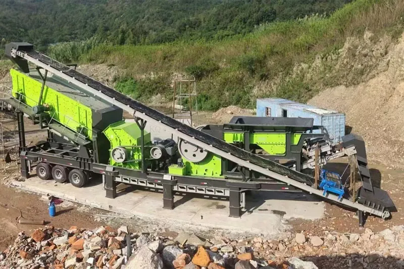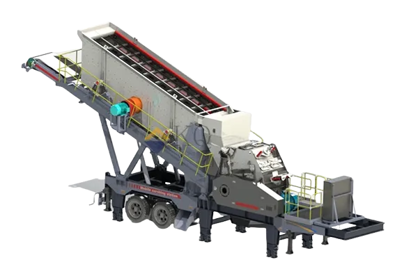 The tire mobile impact crushing plant is designed for efficient crushing and fast transfer, equipped with full hydraulic tire chassis, four-wheel independent steering + hydraulic outrigger stabilization system, self-propelled movement without trailer (speed 1.8km/h), 15 minutes to complete the parking - crushing mode switching, suitable for construction sites, quarries, and other flat sites. The core impact crusher adopts heavy-duty double rotor design (speed 450-750rpm), equipped with high chromium composite plate hammer (life expectancy ≥ 6,000 hours), with a maximum feed size of 600mm, capacity of 200-650t/h, finished product size of 10-50mm infinitely adjustable, and a cubic rate of ≥ 92%. Intelligent control system monitors the rotor balance, bearing temperature and motor load in real time, automatically matches the gap of impact plate and feeding frequency, and triggers the shutdown protection within 5 seconds under abnormal working conditions, reducing the failure rate by 45%. The modular quick-disassembly structure supports 15-minute replacement of the plate hammer, the integrated reclaim circulation system improves the crushing efficiency by 20%, and the -25℃ low-temperature preheating and 50℃ forced air-cooling ensure all-weather stable operation. It is suitable for granite, concrete recycled aggregate and other high hardness materials, and the power consumption of single machine is as low as 1.4kW-h/ton. It can be equipped with electromagnetic iron remover or three-stage screening module to realize the integrated operation of “crushing-screening-removing impurities”, which can increase the integrated production capacity by 35%, and shorten the return on investment cycle to 12 months.
